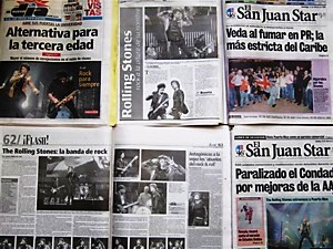 Febrero 11, 2006. - En el Coliseo de Puerto Rico José Miguel Agrelot se presentó por primera vez ante su fiel e inmensa fanaticada boricua el grupo londinense The Rolling Stones, sin discusión la banda rockera de más exitosa y prolongada trayectoria de todos los tiempos. Su concierto, titulado The Bigger Bang, se basó en el material de su álbum homónimo (Universal 001290302), aunque también incluyó buena dosis de sus éxitos más representativos. Se estima que cerca de 20,000 rockómanos, no pocos provenientes de otros países, aclamaron hasta el delirio a Mick Jagger (cantante líder); Keith Richards (guitarrista y segundo vocalista); Ron Wood (guitarrista); Darryl Jones (bajista); Charlie Watts (baterista) y Chuck Leavell (tecladista). El próximo año, 2010, cumplirán medio siglo de fenomenal carrera.