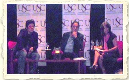 de Benicio Del Toro y Oliver Stone con estudiantes