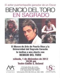 En el Teatro Emilio S. Belaval, de la Universidad del Sagrado Corazón, se recibió la visita del actor Benicio del Toro junto al galardonado director Oliver Stone. A la charla en USC, moderada por la profesora Sonia Fritz, siguió una ronda de preguntas y respuestas entre el alumnado y tan distinguidos invitados.