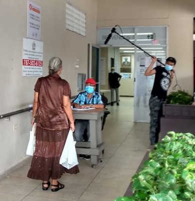 Yo acababa de coger el puesto de líder cultural de un condominio de envejecientes en Rio Piedras en plena pandemia. Mi jefe en ese momento sabía que yo escribía. Así que me puso un reto de crear un cortometraje con el tema de la pandemia. Mi primer paso fue conversar con el grupo de envejecientes que participan de las actividades culturales. Ellos fueron platicándome sus experiencias durante los primeros dos meses de la pandemia. Luego me senté y comencé la creación de los personajes y de la historia tomando como base esas experiencias. Mi objetivo era crear una pieza donde las personas se vieran reflejadas en los personajes. La historia fue tratada al principio como pequeñas estampas cotidianas. Era la forma más fácil de trabajarla, ya que apenas teníamos tiempo para ensayar. Cada personaje que vemos son realmente ellos mismos, con un poco de mi picardía. Pero la esencia de lo que ellos expresaron está plasmado en la pieza. Mi deber era que las preocupaciones, miedos, ansiedades y sus voces fueran escuchadas. Me siento muy orgullosa de este grupo de envejecientes que sin saber nada de actuación, supieron plasmar su verdad en este trabajo. En dos días de grabación de 6 horas lograron hacer 21 escenas. Enseñándonos que QUERER ES PODER. Ellos demostraron que si amas lo que haces todo es posible.