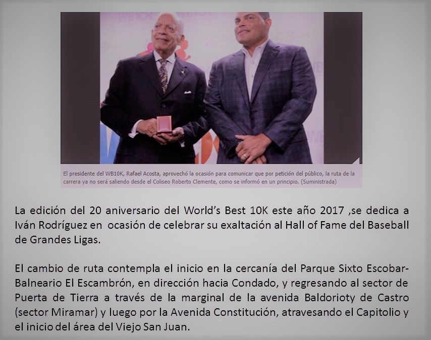 El capítulo de Puerto Rico de la Alianza de Hombres y Mujeres Empresarios reconoció al WB10K por “la excelencia en promover a Puerto Rico como destino del turismo deportivo internacional”.Se crea el Expreso pa’La Carrera, sistema de transporte que integra el Tren Urbano y guaguas exclusivas para facilitar la transportación de los participantes.