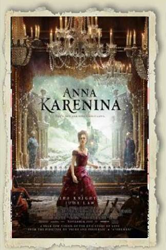 6. Anna Karenina (Universal Pictures, Focus Features & Working Titles Films, 2012, Inglaterra, R). Género: drama. Basada en la clásica novela homónima del escritor ruso León N. Tolstoi (1828-1910). Fecha de estreno en Fine Arts Cinemas, San Juan, Puerto Rico: diciembre 27. Al momento, estaba nominada al premio Golden Globe correspondiente a Mejor Película. Director: Joe Wright. Director de Fotografía: Seamus McGarvey. Guionista: Tom Stoppard. Editora: Melanie Oliver. Protagonistas: Keira Knightly («Anna Karerina»); Jude Law («Karenin»); Aaron Taylor-Johnson («Vronsky»); Guro Negelhus-Schia («Annushka»); Kelly MacDonald («Dolly») y Matthew Macfadyen («Oblonsky»). Entre el extenso reparto, resaltan las actuaciones de Marine Battier, Steven Beard, Max Bennett, Bodil Blain, Tannishtha Chatterjee, Kenneth Collard, Sam Cox, Buffy Davis, Cara Delevingne, Aruhan Galieva, Domhnall Gleeson, Freya Golpin, Claire Greenway, Carl Grose, Bryan Hands, Hera Hilmar, Nick Holder, Henry Lloyd-Hughes, Susanne Lothar, Eric MacLennan, Joseph Macnab, Oskar McNamara, Beatrice Morrissey, Cecily Morrissey, Octavia Morrissey, Theo Morrissey, Luke Newberry, Arthur Nightingale, James Northcote, Alexandra Roach, Michael Schaefer, Mike Shepherd, Kyle Soller, Pip Torrens, Eros Viahos, Alicia Vikander, Gale Wesson, Olivia Williams, David Wilmot y Ruth Wilson. Banda sonora: Darío Marianelli. Duración: 129 minutos.