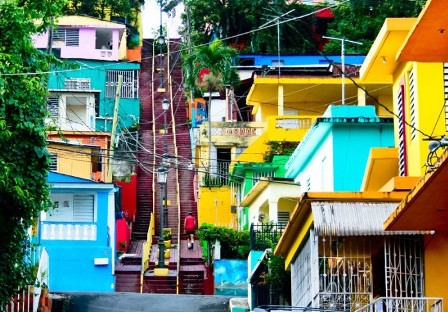 Esta topografía tan peculiar le ha dado una característica muy llamativa para todo aquel que visita el municipio. Al centro del pueblo, en el sector llamado El Cerro, Gurabo cuenta con cinco escaleras, las cuales dan acceso a la calle principal, Andrés Arús Rivera. Estas escaleras pintadas de colores radiantes, extremadamente empinadas y estratégicamente ubicadas, fueron construidas bajo la administración del ex Alcalde, Miguel González en 1943 y constituyen uno de los atractivos principales de la localidad, tan es así. que le ha legado su cognomento:: Gurabo “El Pueblo de las Escaleras” Los obreros gurabeños cargaban la arena y la piedra en latas y las sostenían con palos para llevarlas hasta El Cerro. Utilizaron instrumentos rústicos como: pico, pala y azada. Fueron reconstruidas durante la administración del ex Alcalde, Ramón García Caraballo durante el periodo del 1980 hasta 1992 y se remodelaron nuevamente en el 2004.
