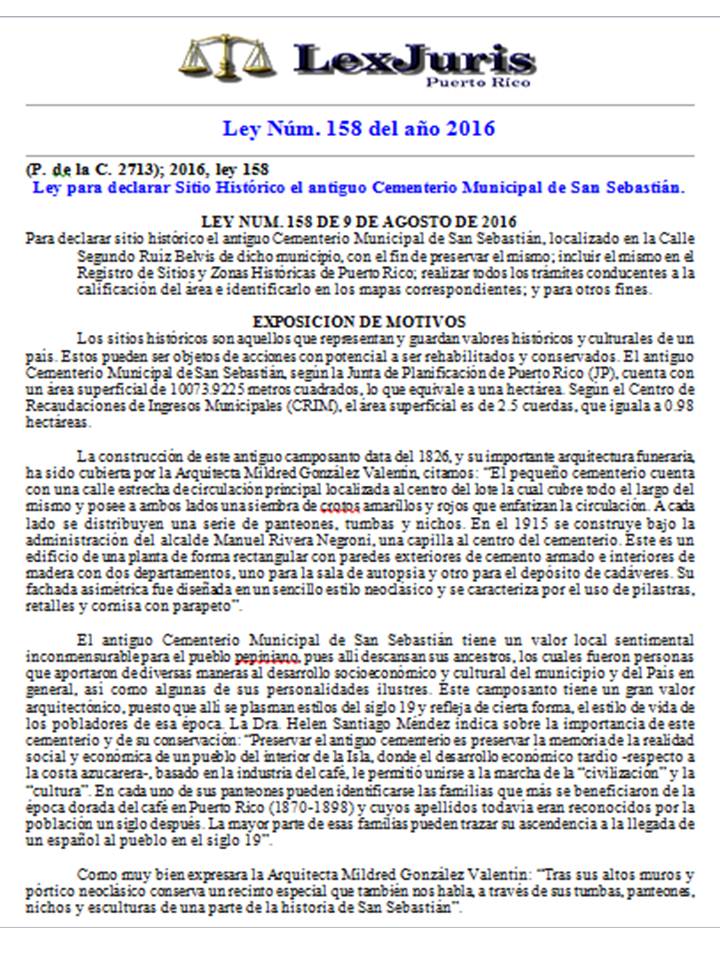 Sobre este aspecto y la importancia de su conservación, citamos la opinión de la Dra. Helen Santiago Méndez, historiadora, plasmada en la Ley que lo declara lugar histórico: